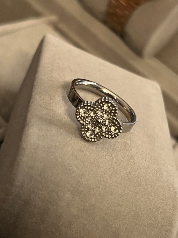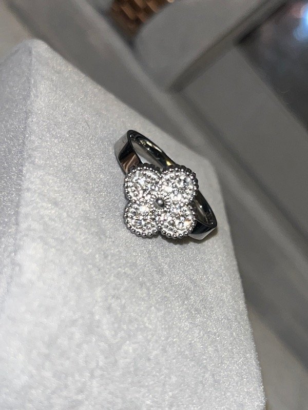 Anillo trébol pave oro blanco