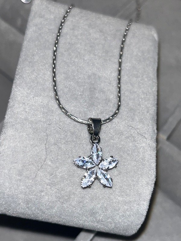 Cadena flor con piedras oro blanco 50 cm