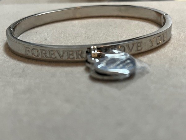For love esclava doble corazón laminada oro blanco. 925